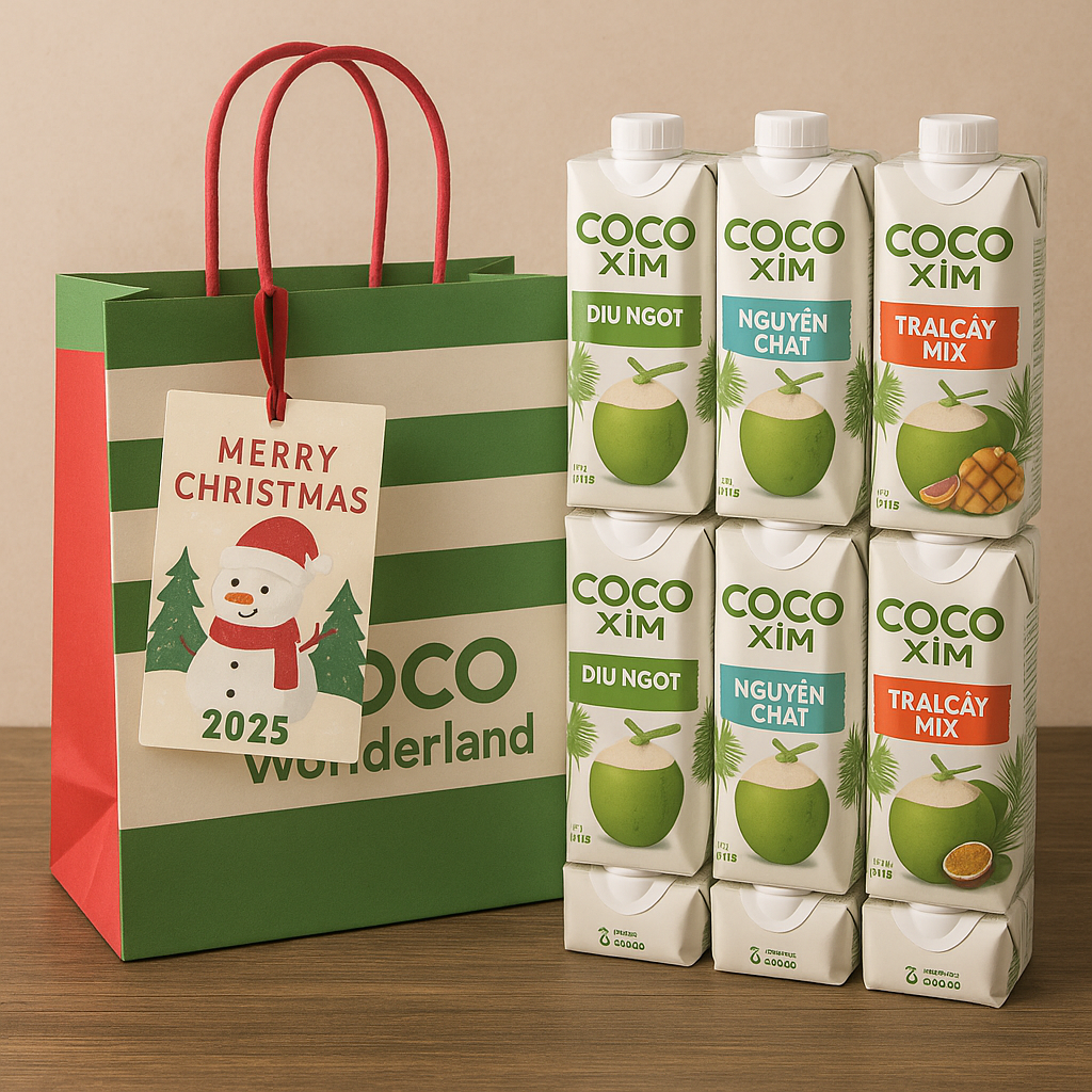Giáng Sinh là mùa của sẻ chia. Thay vì những món quà mang tính hình thức, Cocoxim khuyến khích người tiêu dùng trao nhau sự quan tâm thông qua sức khỏe. Một combo nước dừa Coco Wonderland không chỉ là thức uống, mà còn là lời chúc: luôn tươi mát, cân bằng và tích cực trong năm mới.